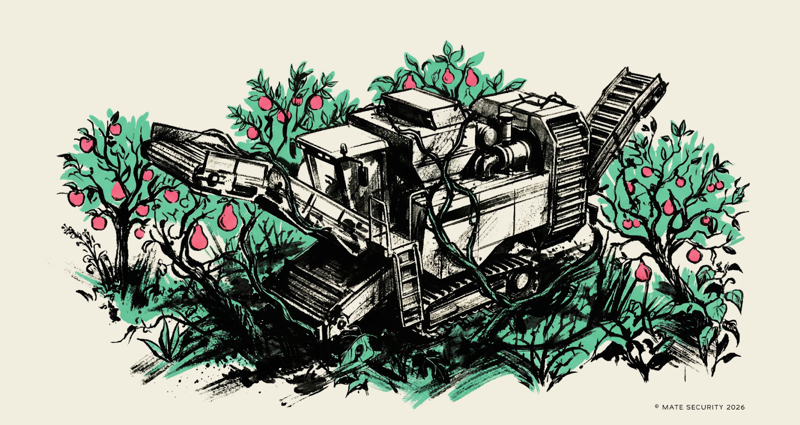 The harvester breaks, until you restructure the grove around it; only then does it scale.